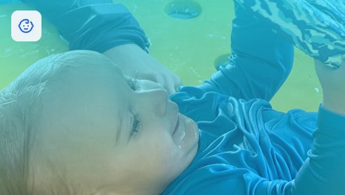 Water adaptation, floating, first dives, and self-rescue techniques in a safe, nurturing environment.